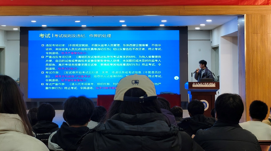 为进一步强化学生诚信应试意识,营造公平公正的考试氛围,引导学生树立正确的价值观与荣辱观,12月24日,24级通信工程专业(1-12班)组织开展诚信考试主题班会。全体学生参与本次班会,班会由辅导员唐玉杰老师主持。