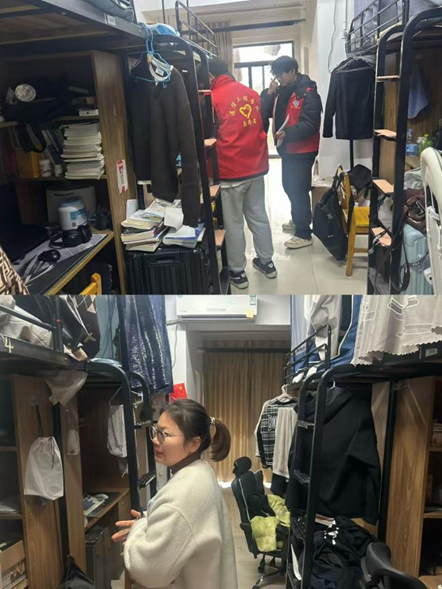 检查过程中,辅导员李老师与学生骨干组成检查小组,深入学生宿舍,进行逐一细致排查。检查组不仅对宿舍内是否存在热得快、电煮锅、大功率吹风机等违章电器进行重点检查,还对宿舍电路走线、插座使用规范等安全细节进行全面摸排,对排查出的问题现场记录,并要求学生及时整改。针对部分宿舍存在的物品摆放杂乱、卫生死角清理不彻底等问题,督促学生即刻整理,引导大家养成良好的卫生习惯,共同维护干净整洁的住宿环境。