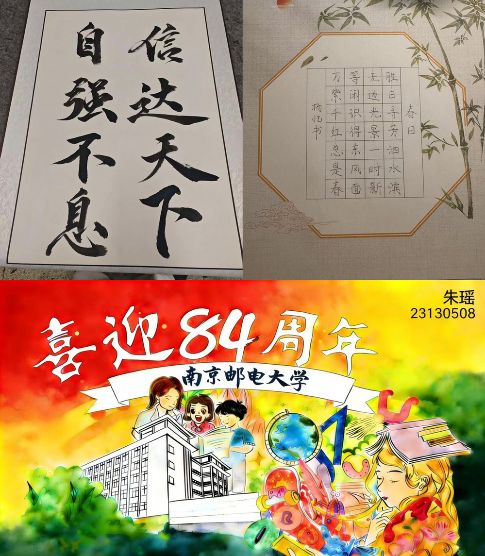 紧接着,学员们怀着对母校的深厚情谊,先后完成了长度为4.2km的健身跑活动,以昂扬姿态奔跑在校园赛道上,用脚步丈量青春担当,用活力诠释南邮学子的奋进风采;结合自身特长与兴趣,学员们精心创作主题征文、手抄报、书法、绘画、海报等作品,以笔墨传情、以创意致敬,每一件作品都饱含着对母校84载办学成就的赞誉,寄托着对母校未来发展的美好期许。