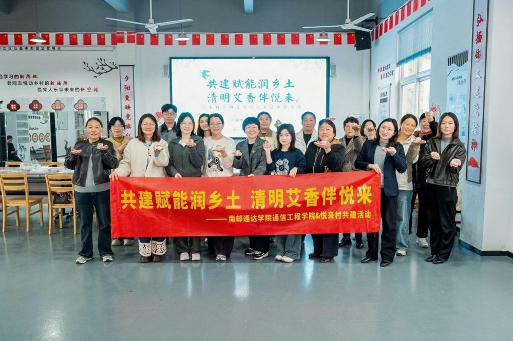 为深化校地党建共建,传承中华优秀传统文化,4月3日清明节前夕,通信工程学院党总支赴扬州市邗江区蒋王街道悦来村开展“共建赋能润乡土,清明艾香伴悦来”艾草花馍非遗体验党建共建活动。通信工程学院党总支书记司艺、各学生党支部书记、教师代表参加活动。