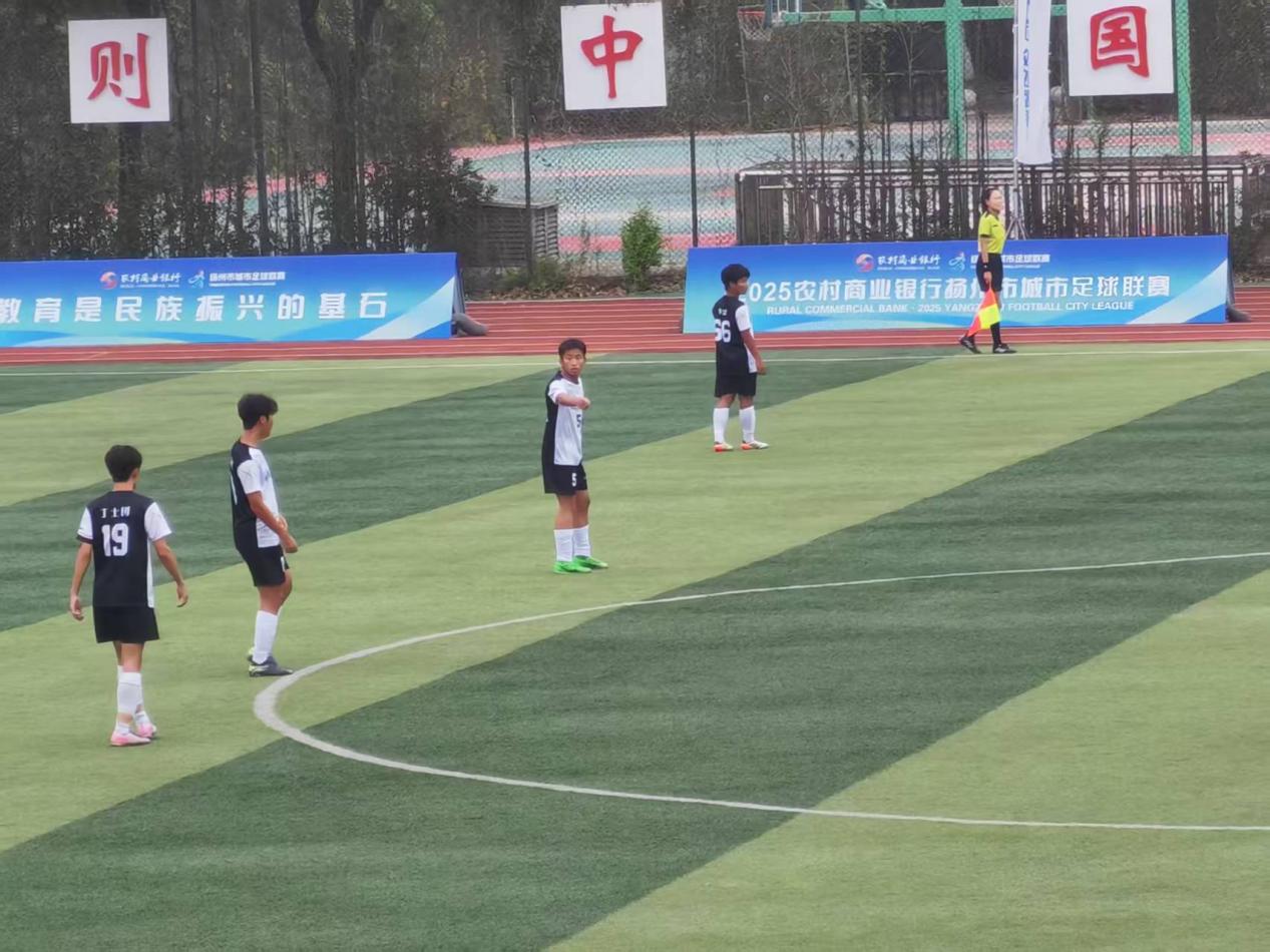 易边再战,对手加大进攻力度,派上输送苏超的预备球员增强火力,凭借中场优势频频发起边路冲击,一粒势大力沉的劲射使得我队守门员脱手破门,扳平比分。面对对手的强势反扑,教练陶曦鸣迅速作出战术布局调整,加强了中后场的控制,稳住局面,抓牢主动,寻找战机。下半场中后程比赛,双方体能消耗带来的疲惫逐渐显现,但球员们丝毫没有松懈,用顽强的斗志延续着“战斗”。队员们顽强的励志品质与教练临场战术调整发挥出了奇效,在比赛时间仅剩十几分钟时,16号球员高嘉鑫在罚球区接到队友回传,稍作调整后一脚远射,足球击中门柱内侧弹入网窝,2:1!这记射门帮助球队再次取得领先,也成为整场比赛的制胜进球。
